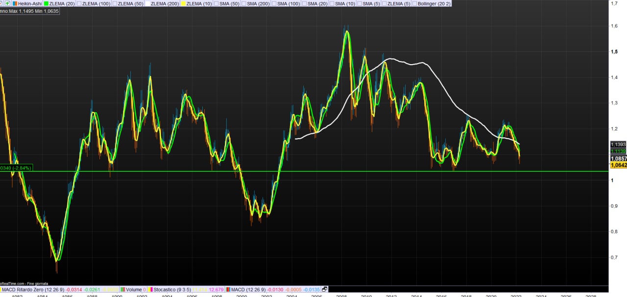 A livello tecnico, 1,034 è il supporto di medio lungo periodo, sotto il quale rimane solo la soglia psicologica della parità.