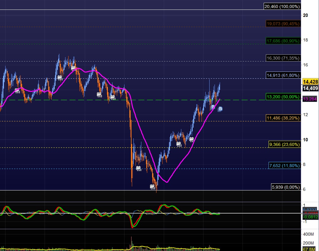 ENI. Ieri ha toccato 14,6 e poi ha chiuso a 14,42. Il prezzo del petrolio continua a salire e le previsioni dicono fino a 135 dollari. Eni dovrebe beneficiarne per salire fino a 4,9 e in superamento fino a 16.3. Il primo supporto importante è a 13,2. Nel brevissimo potrebbe essere a 14.2. Il trend sembra saldamente positivo