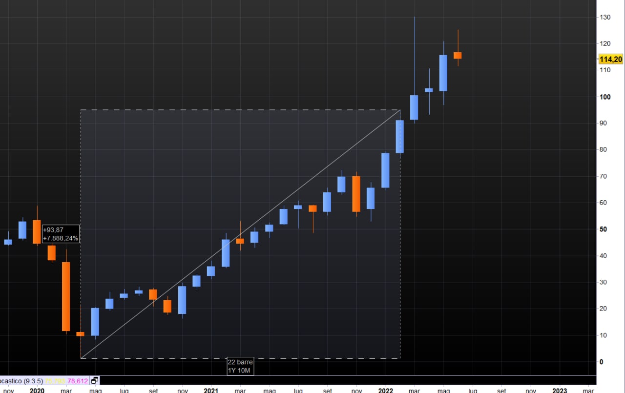 Anche il petrolio se è pur vero che oggi ha prezzi superiori del 20% circa rispetto all'inizio della guerra, è pur vero che dall'aprile 2020 al febbraio 2022 aveva subito un aumento del 7888%. Non male.