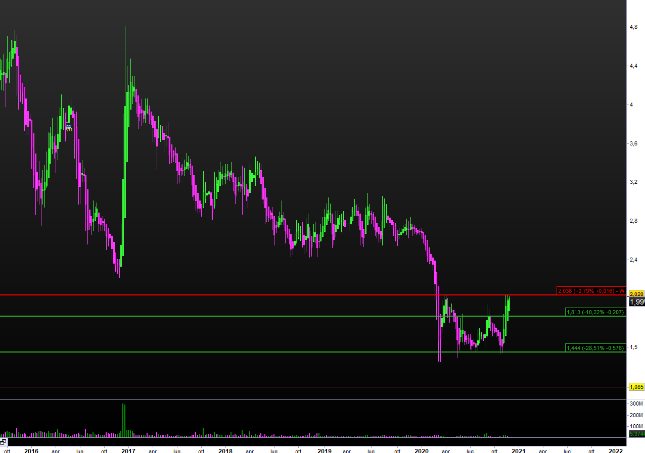 Quindi, molta attenzione, realizzare il guadagno o porre dei limiti in area € 1,90 e al massimo €1,80.