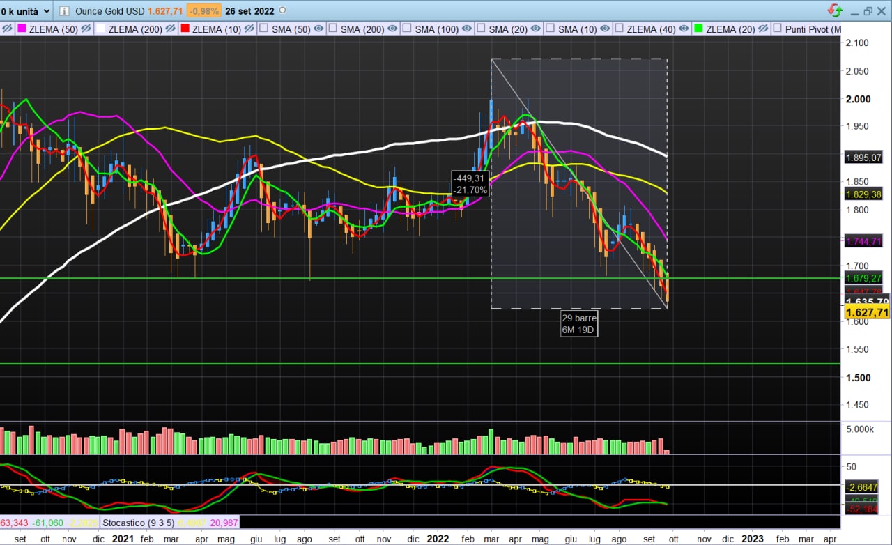 L'oro ha subito perdite importanti e l'abbiamo sempre sconsigliato a chi ci chiedeva un'opinione. Il nemico dell'oro è l'aumento dei tassi di interesse e finchè aumenteranno l'oro si troverà in difficoltà.
