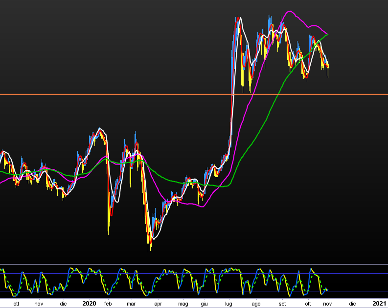 Il grafico rappresenta l'indice di Shanghai, ma avrebbe la stessa configurazione se guardassimo il grafico di paesi come taiwan, corea del sud, i paesi islamici, ed evidenzia chiaramente i guadagni importanti realizzati da inizio anno.