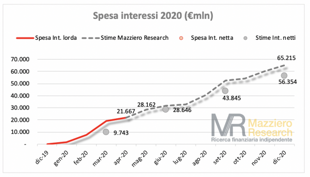 Spesa che aumenterà negli anni futuri sia per l'aumento del debito e sia per l'aumento dei tassi che si ipotizza a causa proprio dell'intervento con creazione di proprio debito della commissione europea. Ciò ridurrà la stampa di moneta della BCE provocando un rialzo dei tassi di interesse che potrebbe essere esiziale per l'Italia e il suo debito.